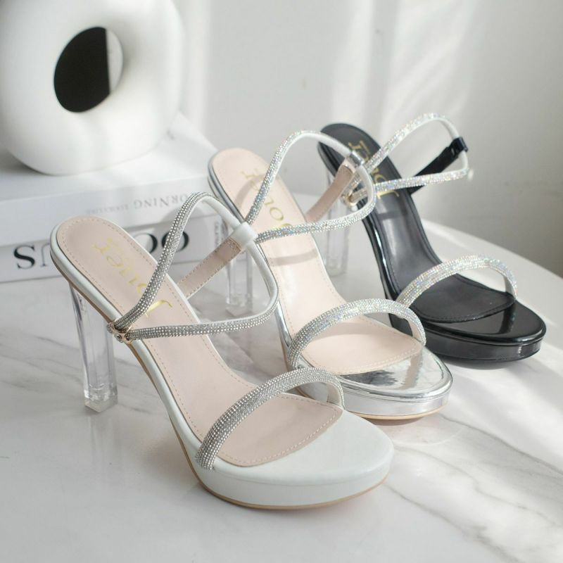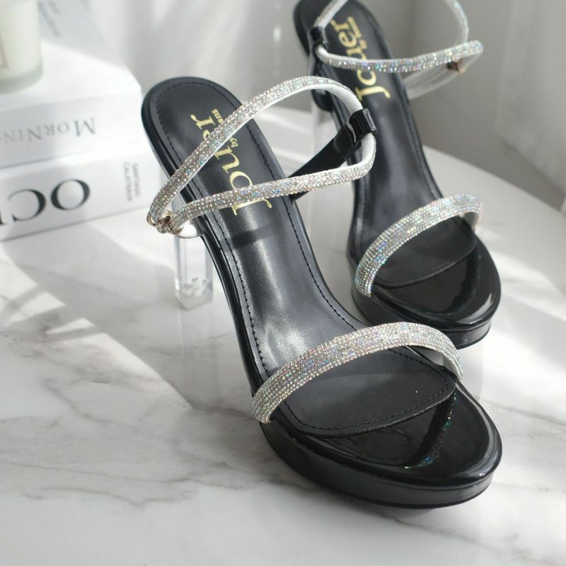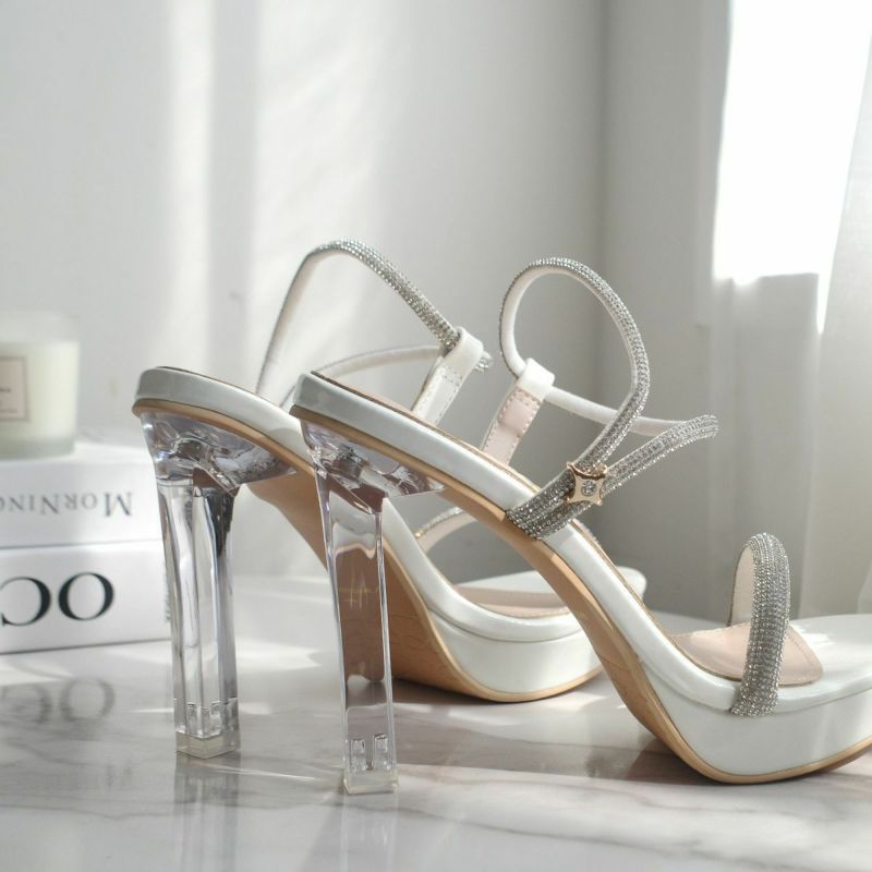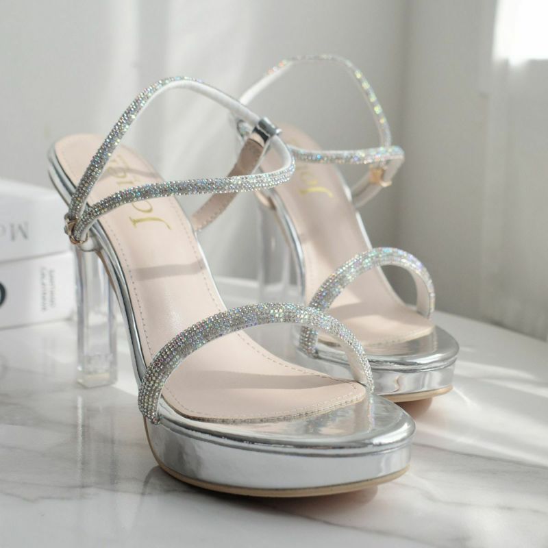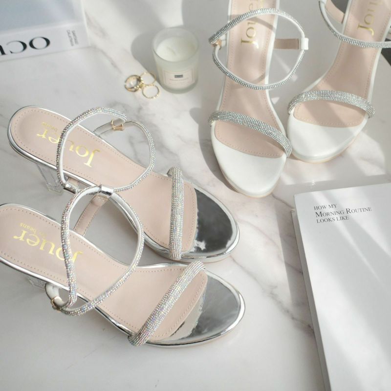 ビジューとクリアヒールがアクセント!美脚を叶える11cmヒール