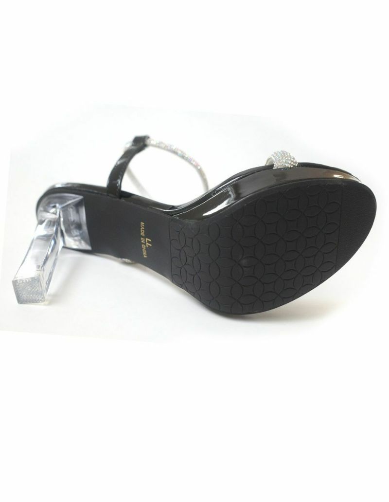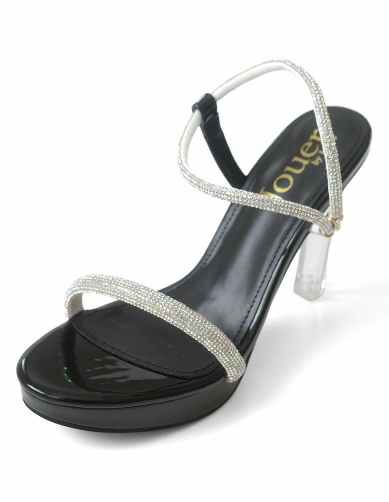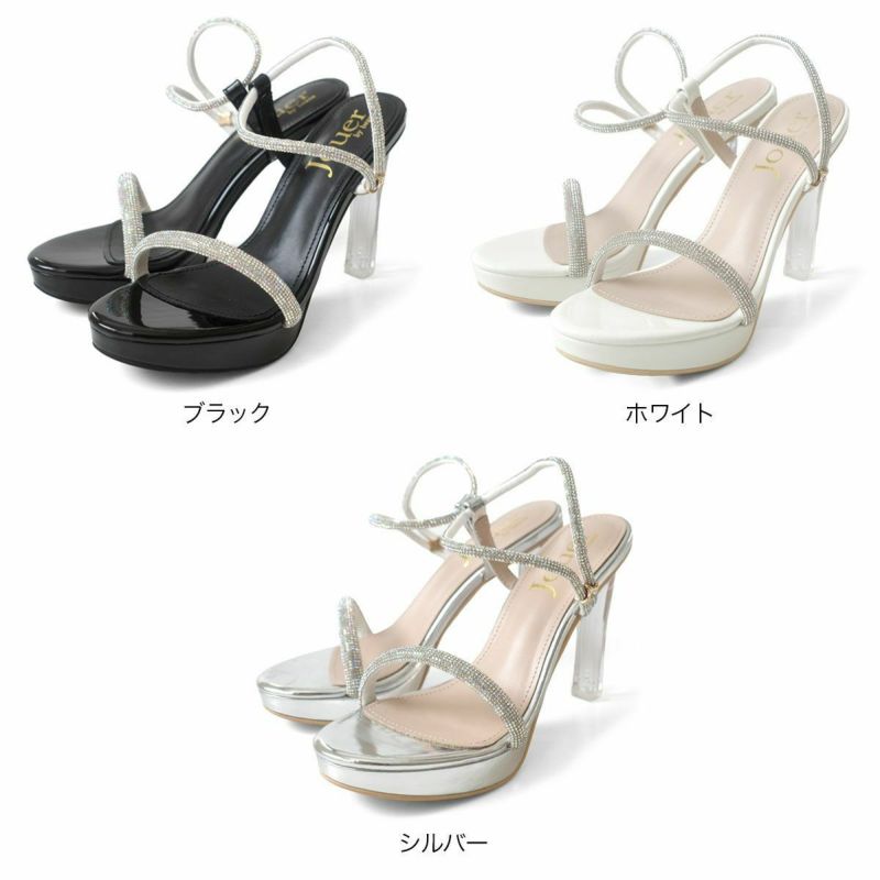 ビジュー付きクリアヒールミュールストラップサンダル レディース