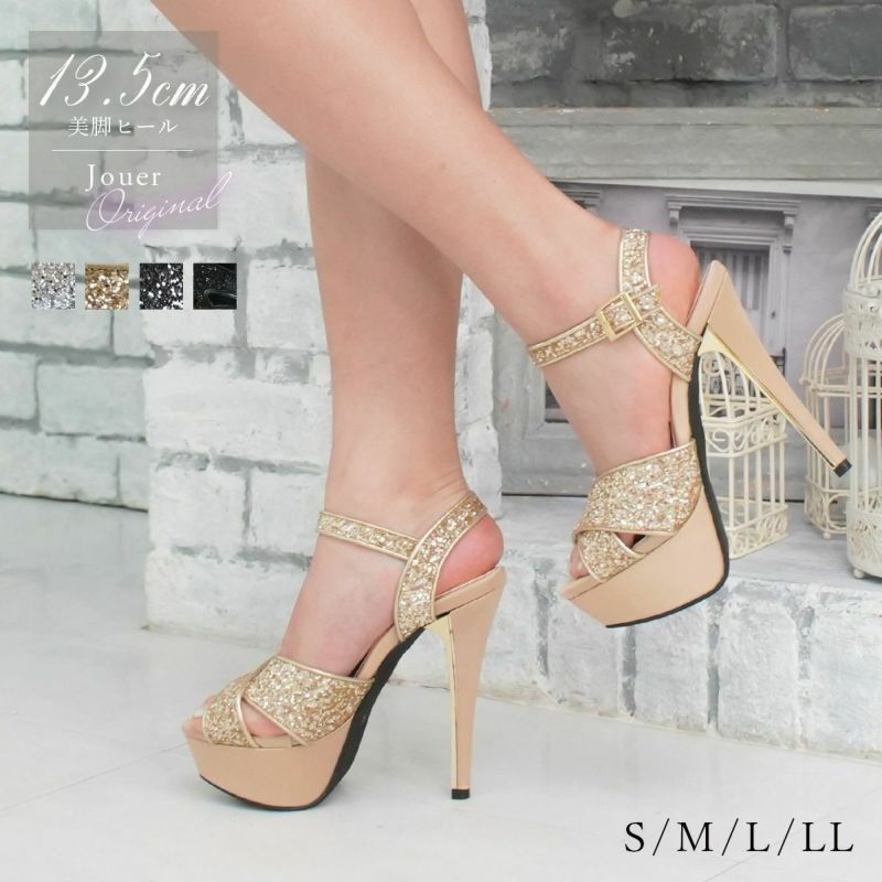 豪華キラキラのグリッターが輝くハイヒールサンダル
