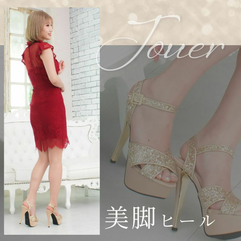 高ヒールなのに厚底ストームで安定感も抜群!フロントのクロスしたストラップが足を美しく華奢に魅せてくれます。