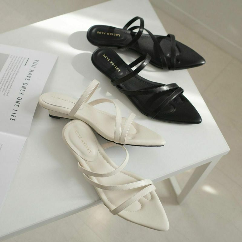 ポインテッドトゥウェッジミュールストラップサンダル レディース