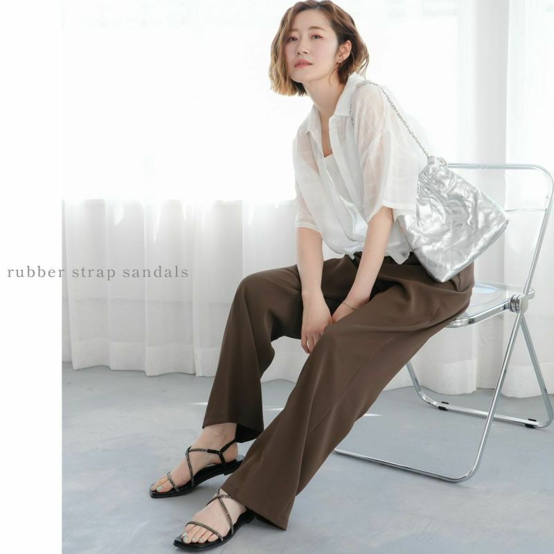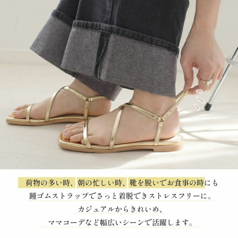 スクエアトゥゴムストラップサンダルフラット レディース