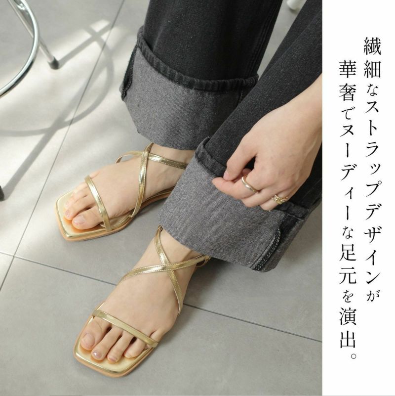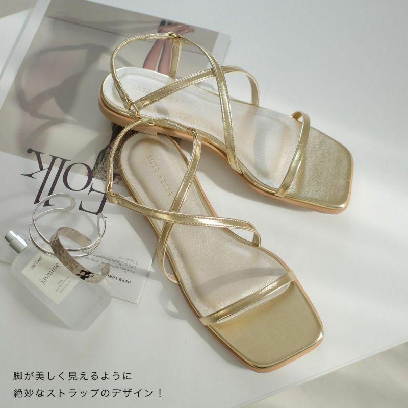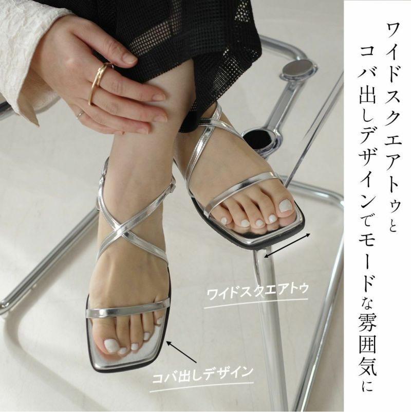 華奢なクロスストラップで安定感とおしゃれを両立華奢なクロスストラップで足元を綺麗に見せてくれます。