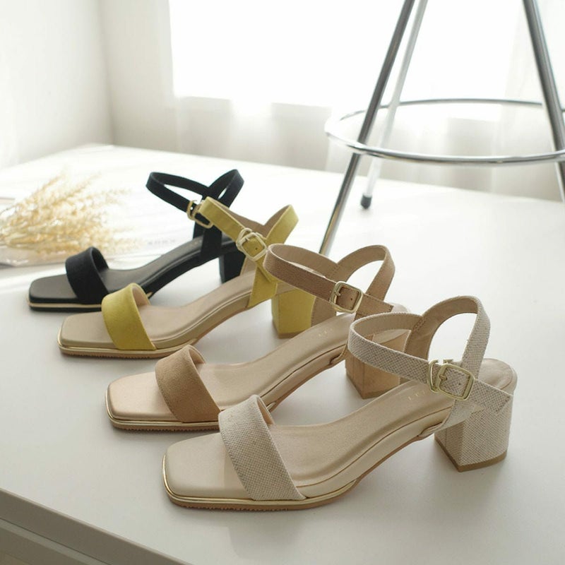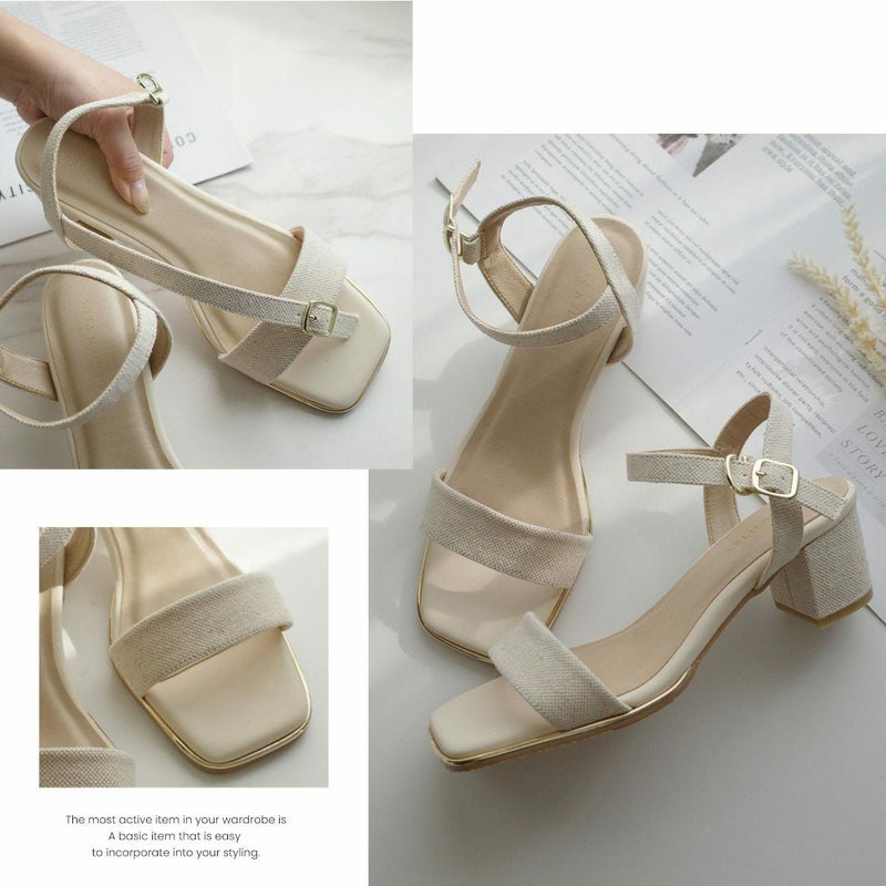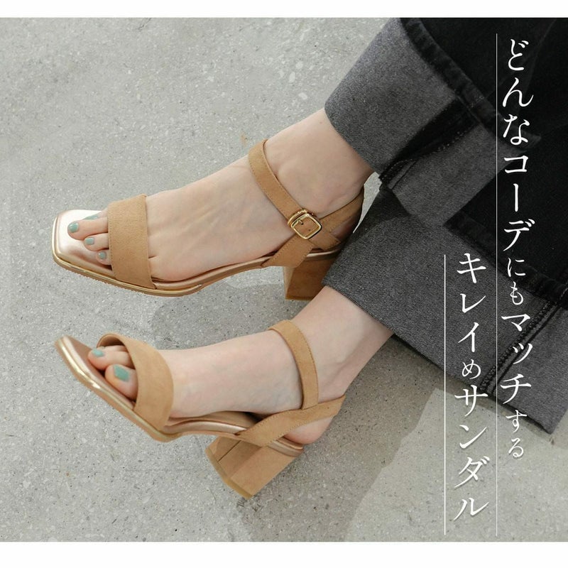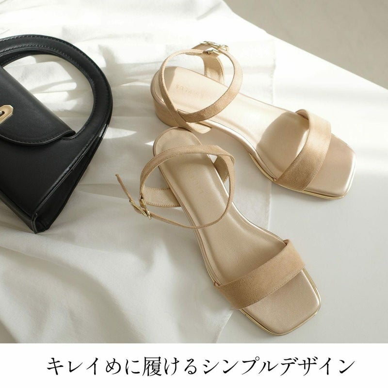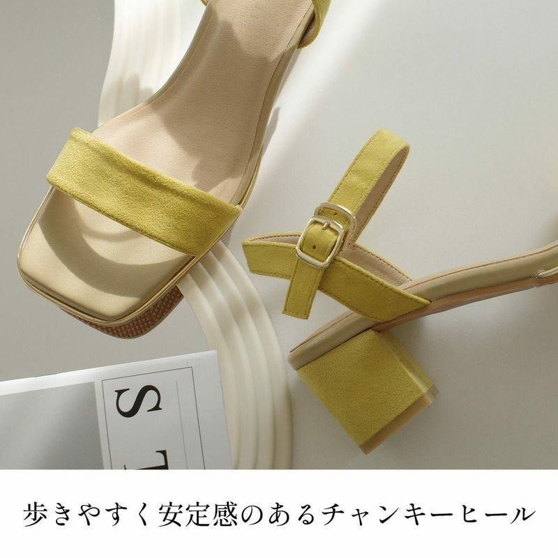ヒールは安定感のあるチャンキーヒール、ストラップは華奢すぎない幅に設計し