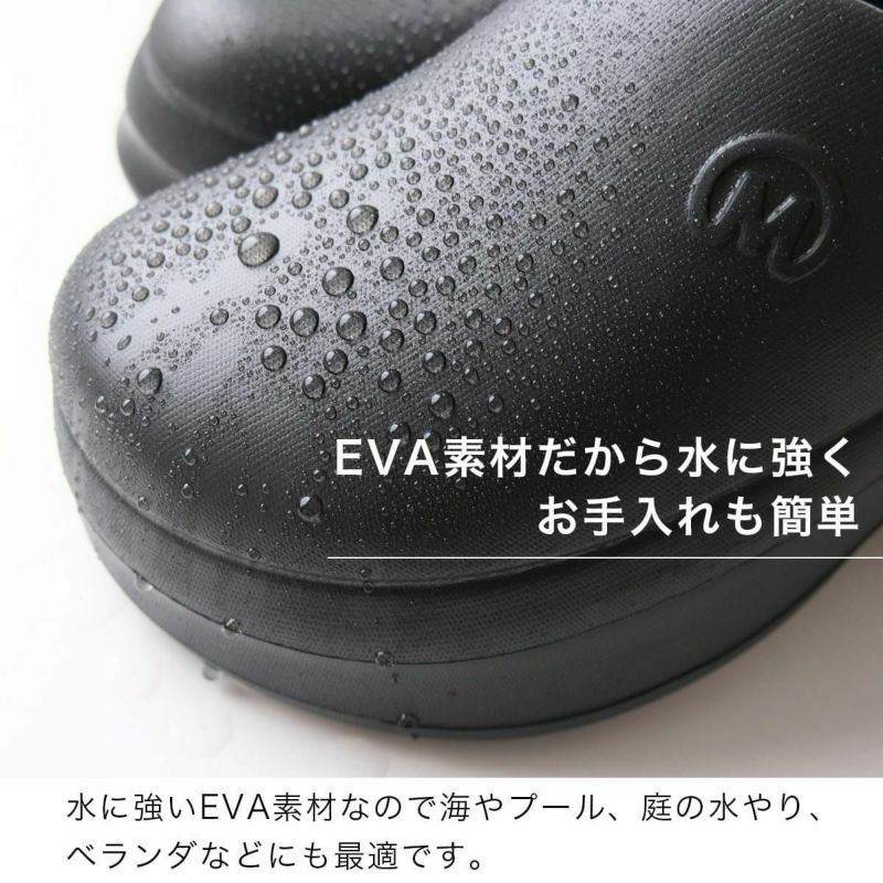 EVA素材なので濡れても汚れてもサッと拭き取るだけでOK!ラクに履けておしゃれ見え!