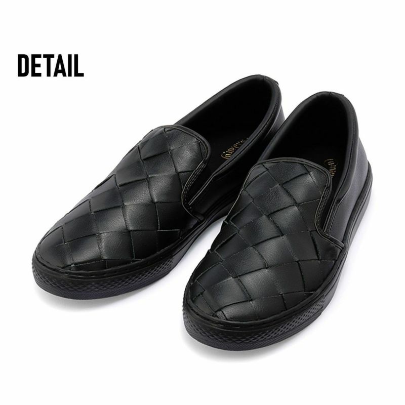 オールブラックのカラーリング、バンプ部分の大柄な編み込みが印象的なスリップオン仕様のアイテム。ラフに履けるスニーカー設備ながら、革靴のような趣きがある大人の足元にぴったりのモデル。