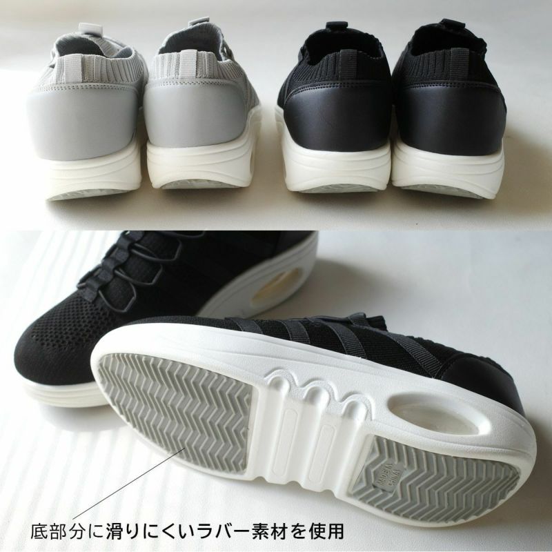 着地時の衝撃を吸収するエアーパーツ入りニットスニーカー