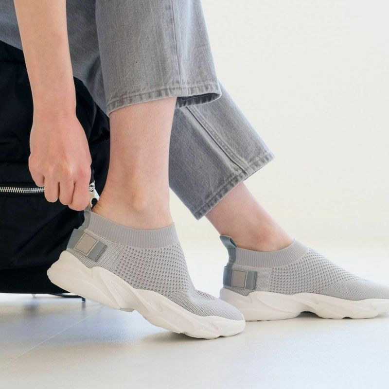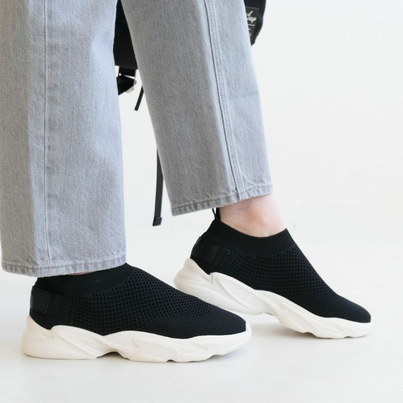 ソックスのようなアッパーで足に程よくフィットし、安定感のある履き心地トレンド感あるボリューム底は、軽量で屈曲性もあり足への負担も軽減してくれます