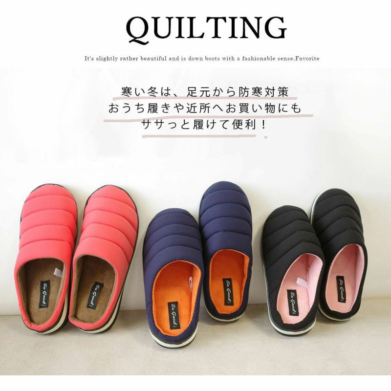 外履きはもちろん室内履きやアウトドアなどにも使える!気軽にスポッ!と履けダウンのような表情に内側フリース素材で、足元あたたか!