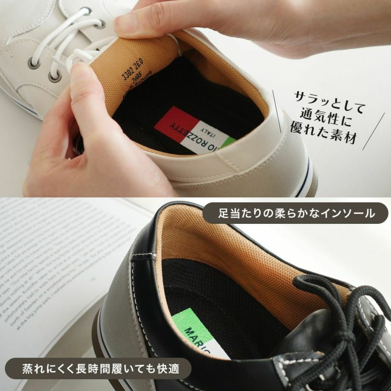 洗練された、お洒落な外見に機能性も充実。休日のカジュアル靴として最適!アッパー撥水加工、シューズのシワが残りにくい防シワ素材を使用。