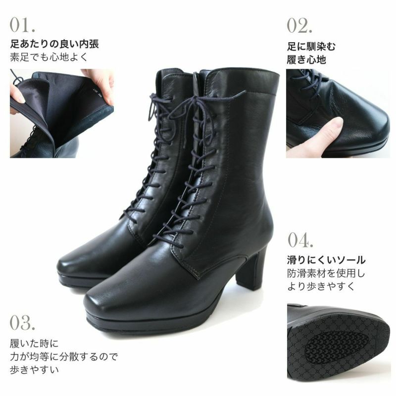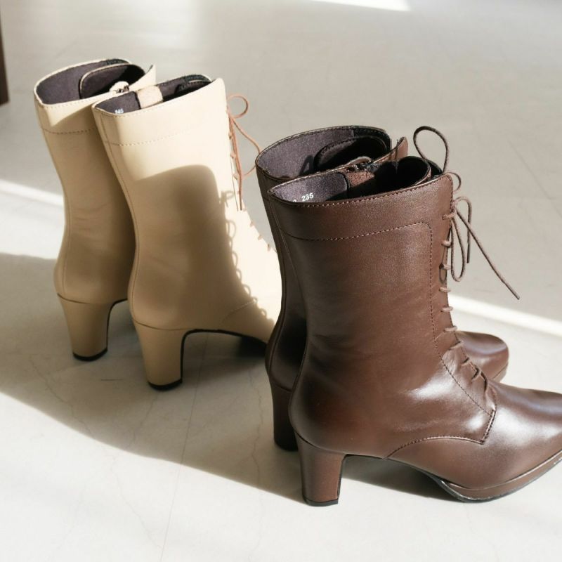 【在庫限り!特別価格!】レースアップ 編み上げ ミドル丈ブーツ本革 レディース