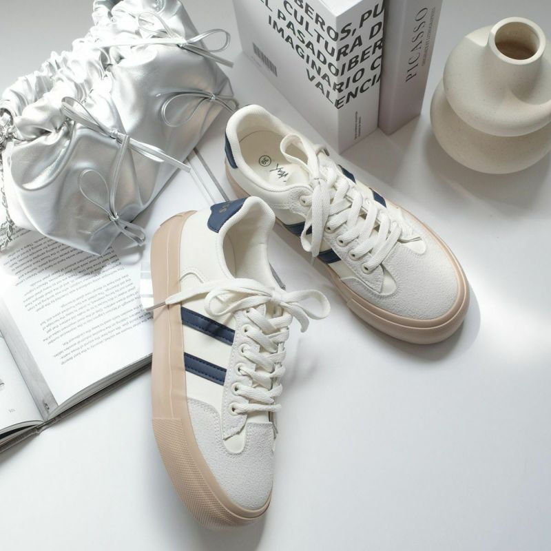 3.5cmのボリュームソールでスタイルアップ効果も!オールシーズン履ける2ラインデザインのレースアップスニーカー