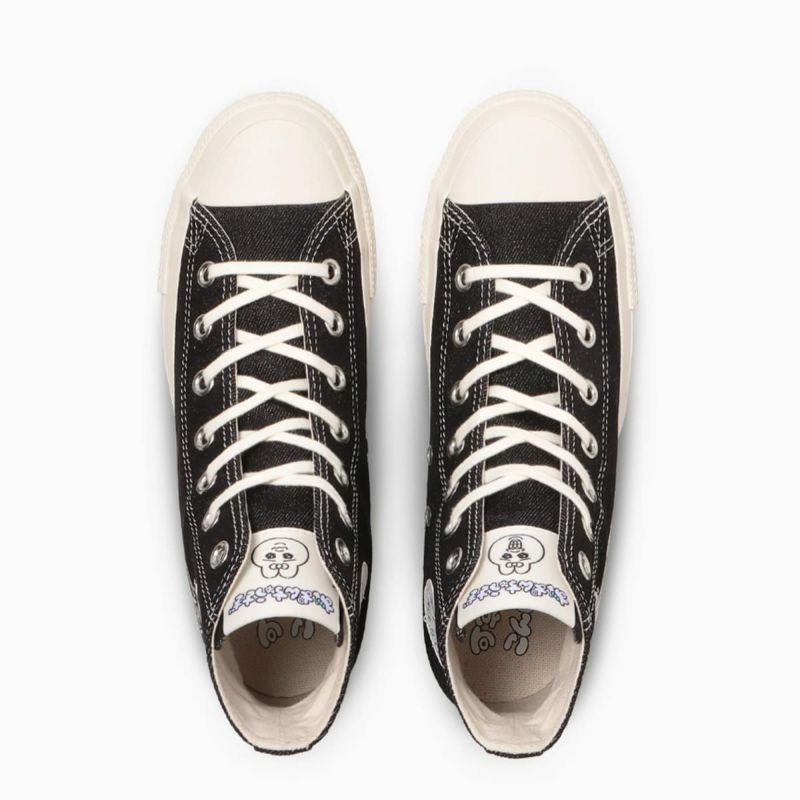 厚底モデルのPLTSをベースに、「おぱんちゅうさぎ」「んぽちゃむ」の描きおろし刺繍をあしらった特別デザイン。アッパーにはデニム素材を採用。アンクルパッチに潜むそれぞれのキャラクターがポイント。