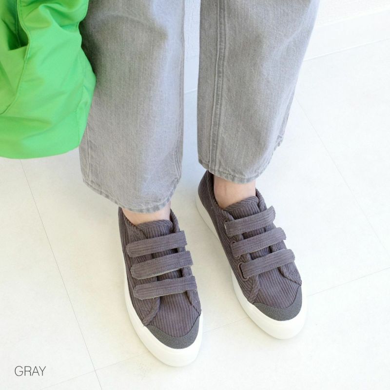 【返品交換不可】【在庫限り!特別価格!】厚底ベルクロスニーカーコーデュロイ レディース