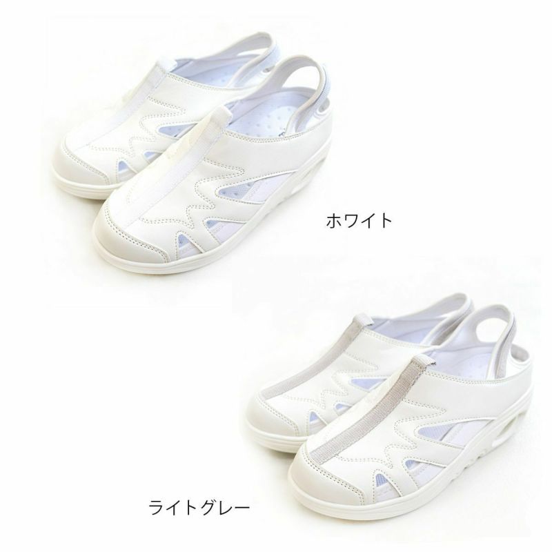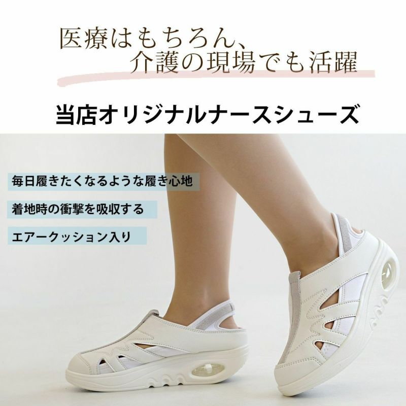 着地時の衝撃を吸収するエアーパーツ入りとソール前後の湾曲形状により無理なく自然な歩行ができる!医療はもちろん、介護の現場でも活躍!働く足を快適にサポート!
