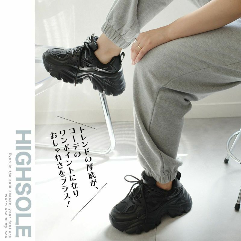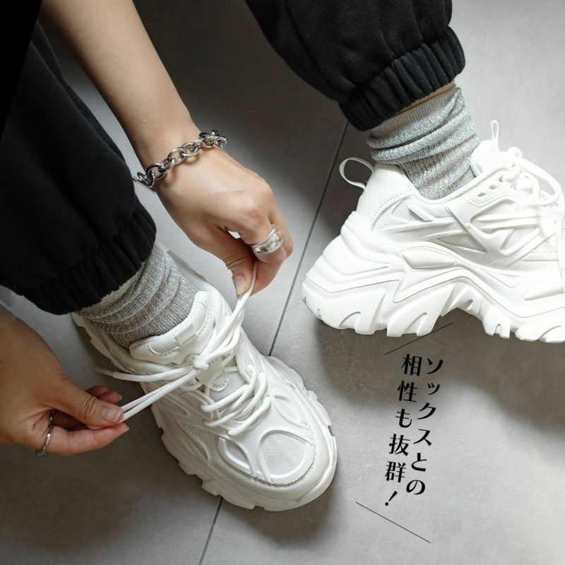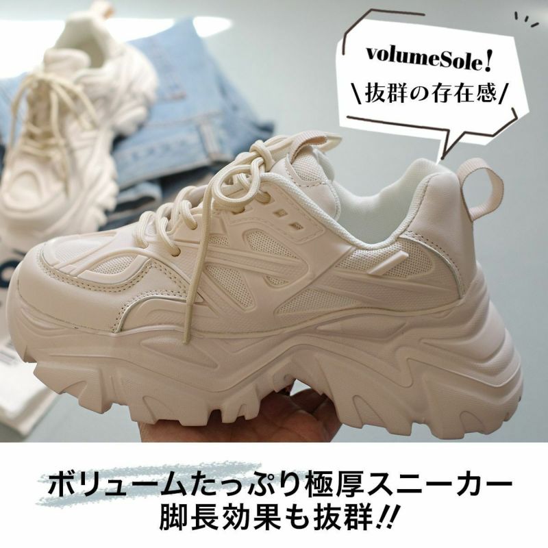 ボリュームたっぷり極厚スニーカーで美脚脚長効果も抜群