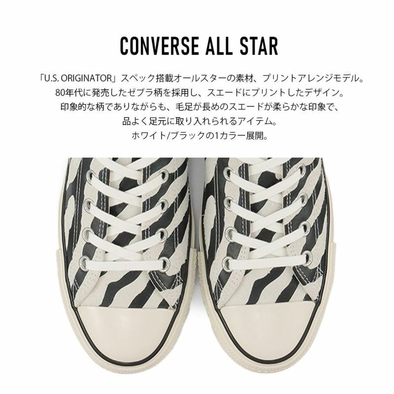 毛足が長めのスエードが品よく柔らかな印象。「U.S. ORIGINATOR」スペック搭載オールスターの素材、プリントアレンジモデル。