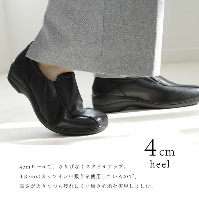 0.3cmカップインソールや撥水加工など機能性も◎伸縮性のあるサイドゴムで脱ぎ履きを楽にしたタウンカジュアルシューズ。
