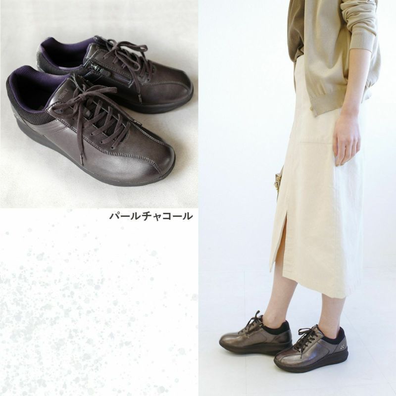 3.5Eでも見た目はすっきり。滑りにくいソールで雨の日も安心。つま先・かかとの角度と厚みのあるソールが歩幅アップを実現。