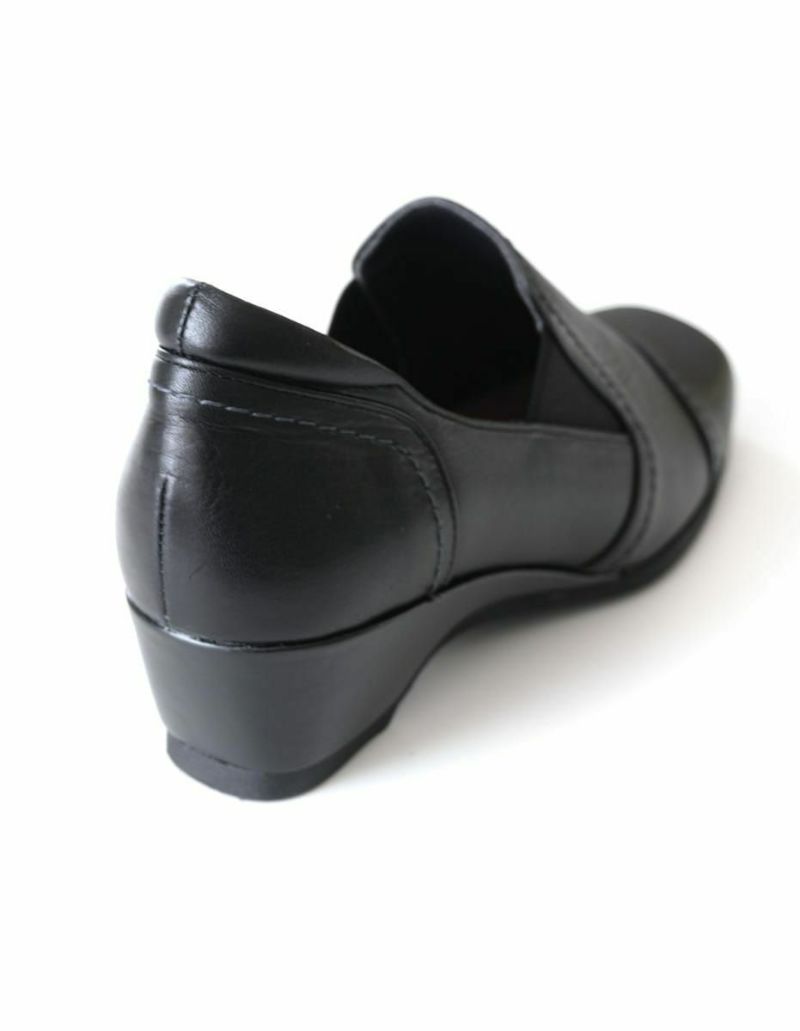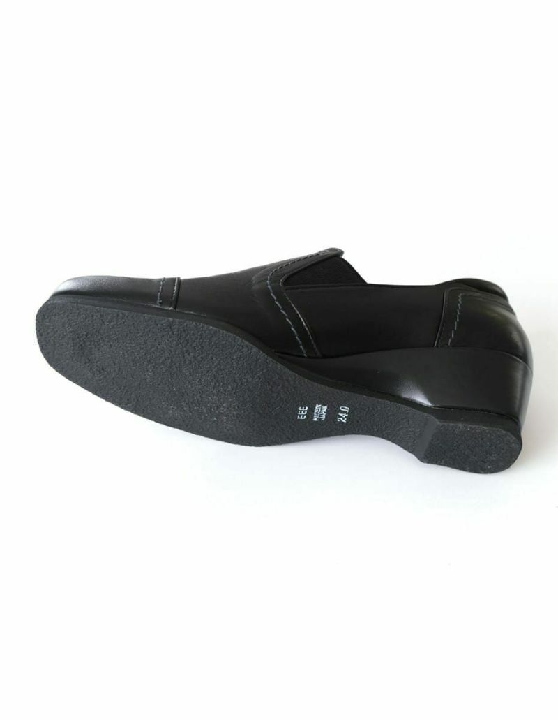 ウエッジソールで快適な履き心地とともに、スタイリッシュさも兼ね備えた1足です。サイドにゴムがあるので脱ぎ履き楽ちん。また、アーチサポートがあるので、
