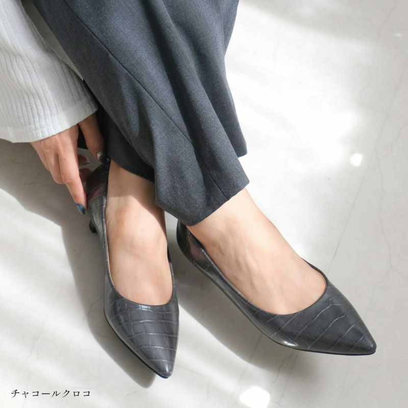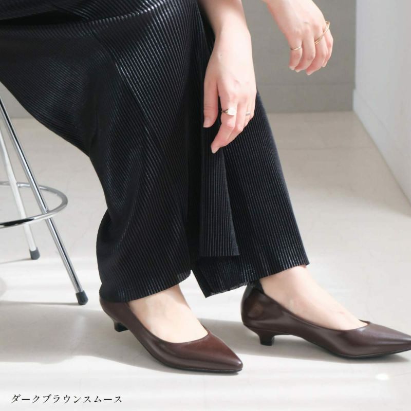 ローヒールでありながらポインテッドで大人っぽくきれいめなフォルムで美脚に見せてくれます。