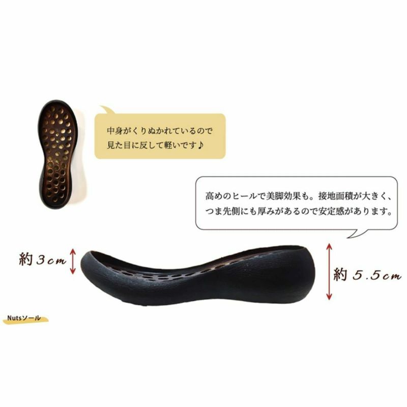 前に歩きやすい『ローリング設計』のソールがポイントです。ころんとかわいい + 歩きやすい “Nutsソール” を使ったサボサンダル。