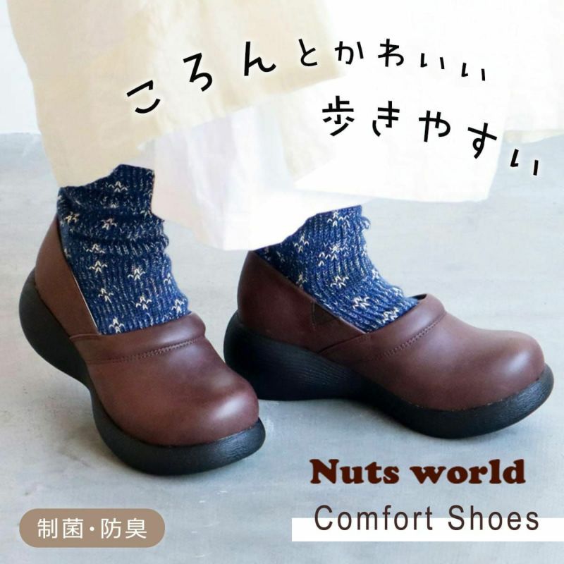 前に歩きやすい『ローリング設計』のソールがポイントです。ころんとかわいい + 歩きやすい “Nutsソール” を使ったスリッポンシューズ。