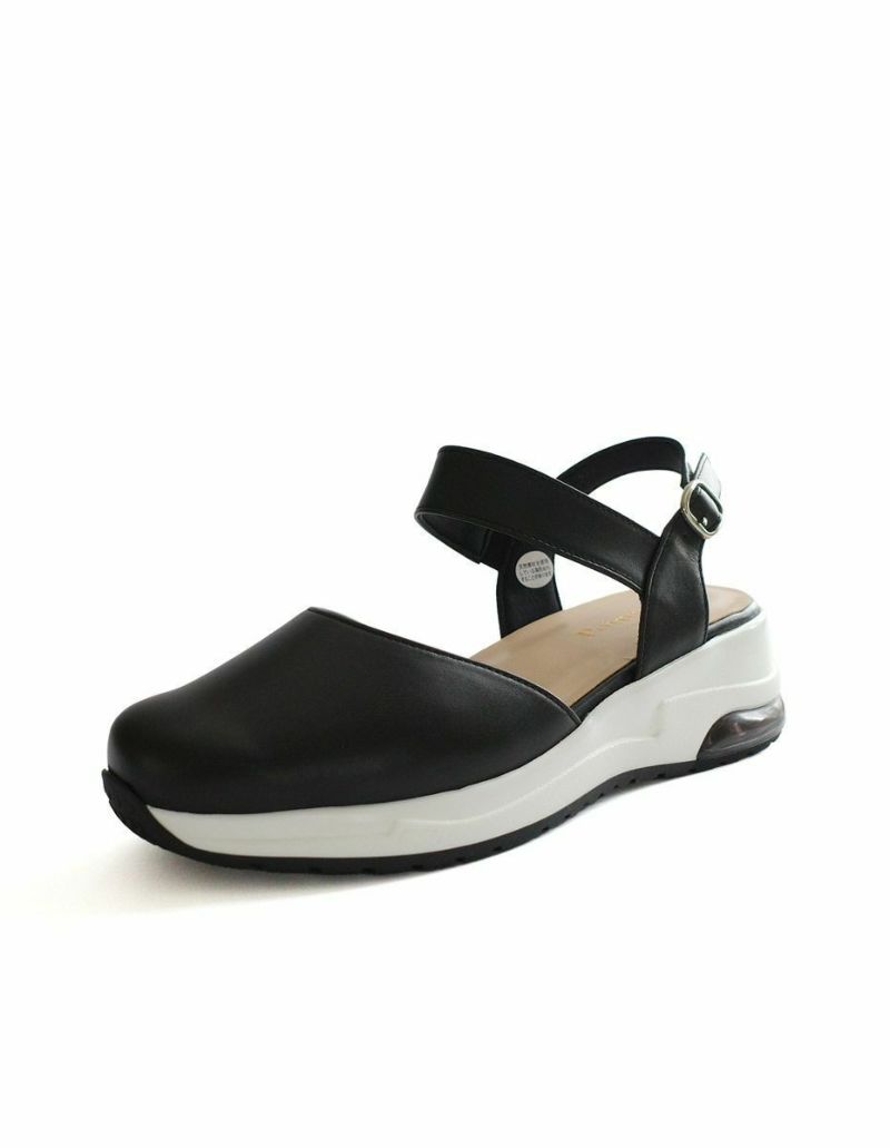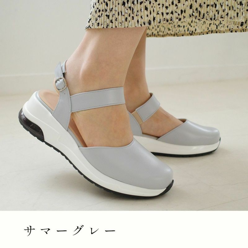 気になるつま先は隠してキレイめに履けるデザインです。足首部分にホールド感があり、ゴム入りで脱ぎ履きもラクラク!バックストラップは3段階に調節可能。