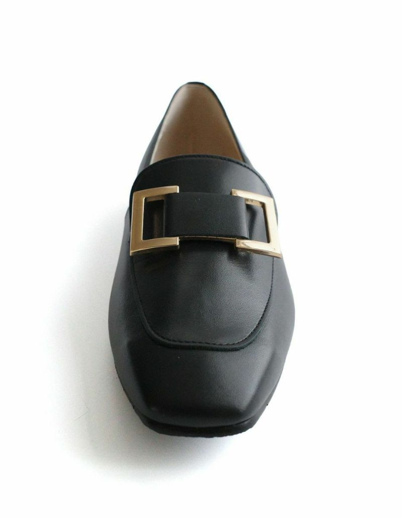 大人っぽいモチーフが脚もとを上品に演出する本革ローファー。