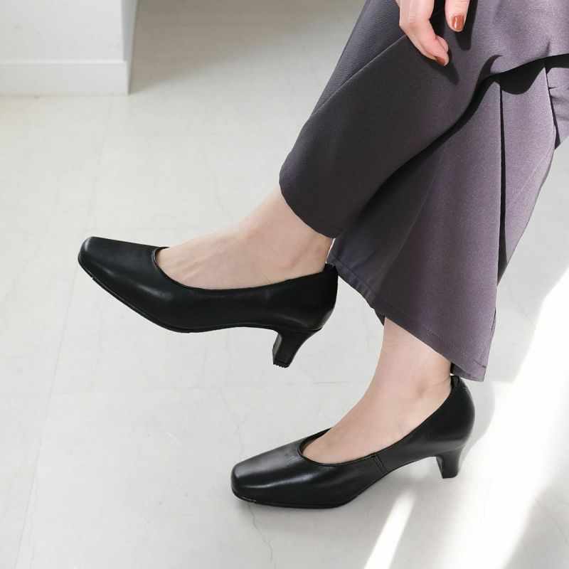 スクエアトゥパンプス本革 レディース