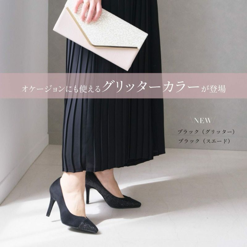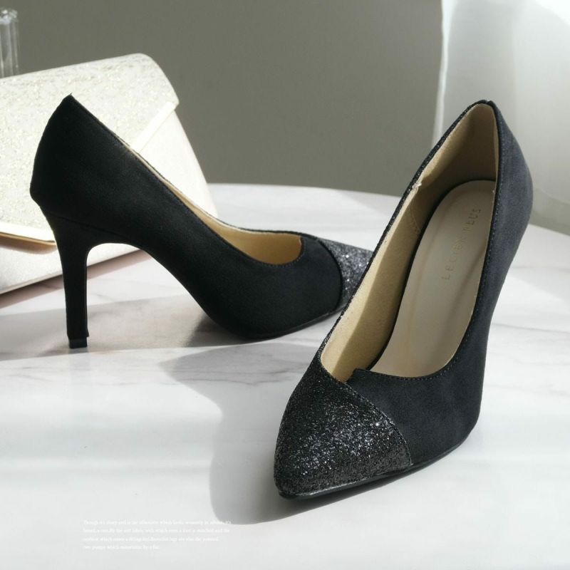 すらりとしたつま先と切り替えデザインが足元にアクセント華奢なピンヒールが脚をキレイに魅せてくれます。