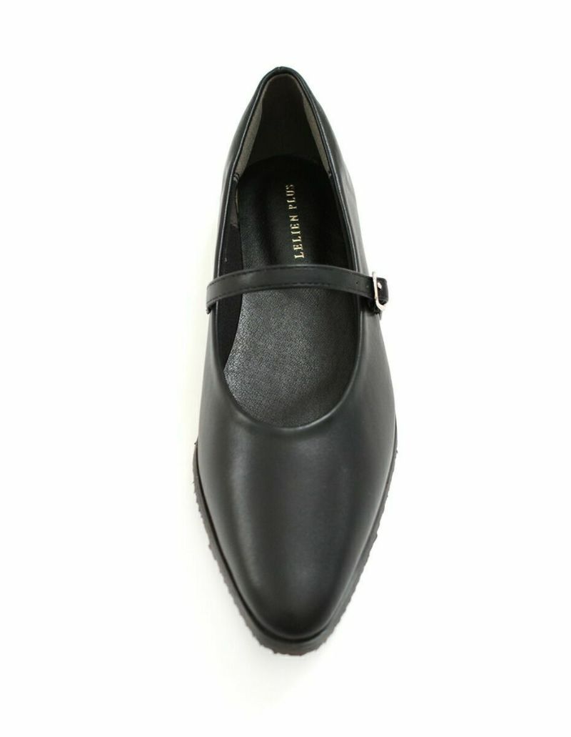 全体的に楽に履けます。ストラップがあるのでパカパカすることなく履けます。つま先はポインテッドなので前まで入らず余っています。とても柔らかな素材で痛くないです。