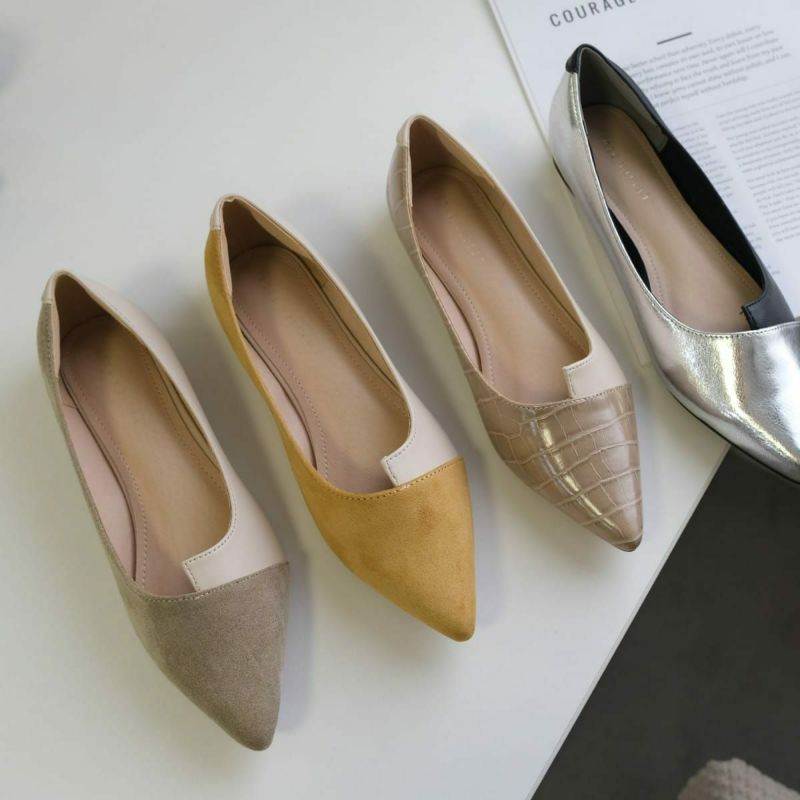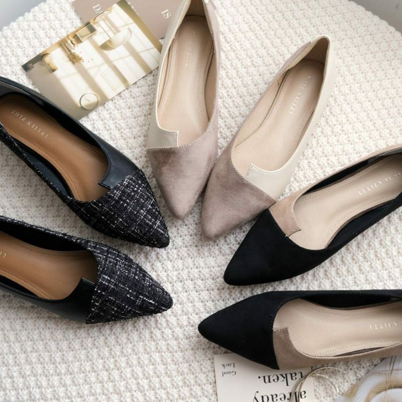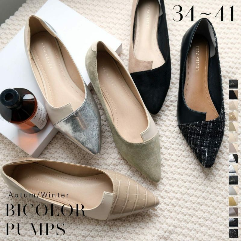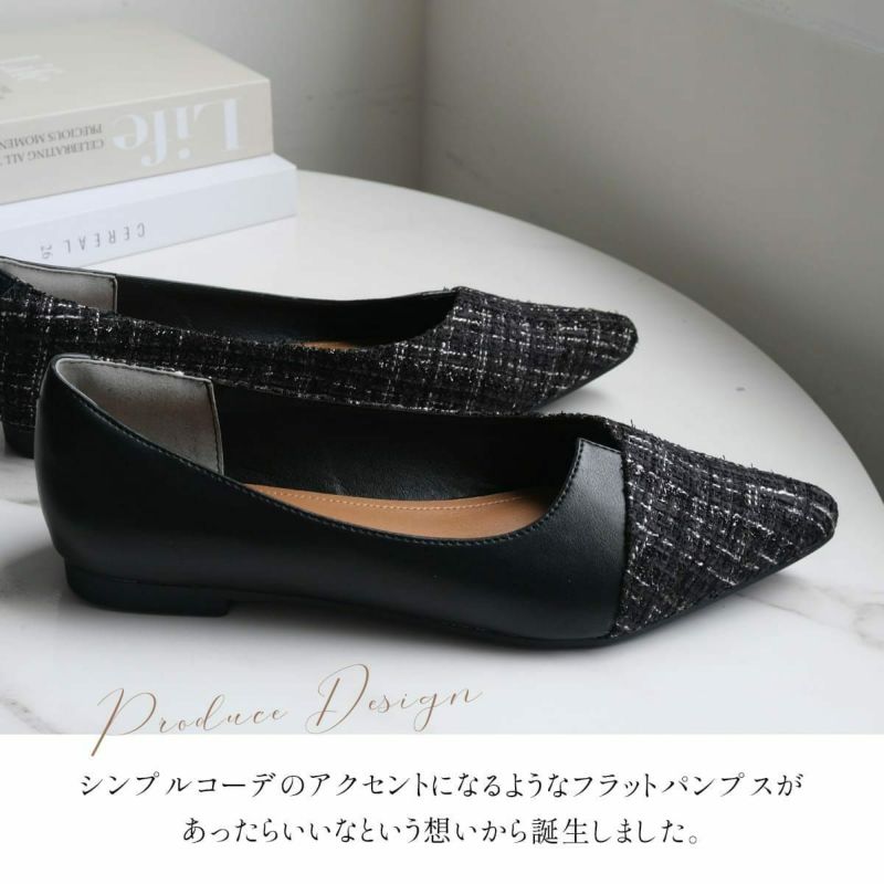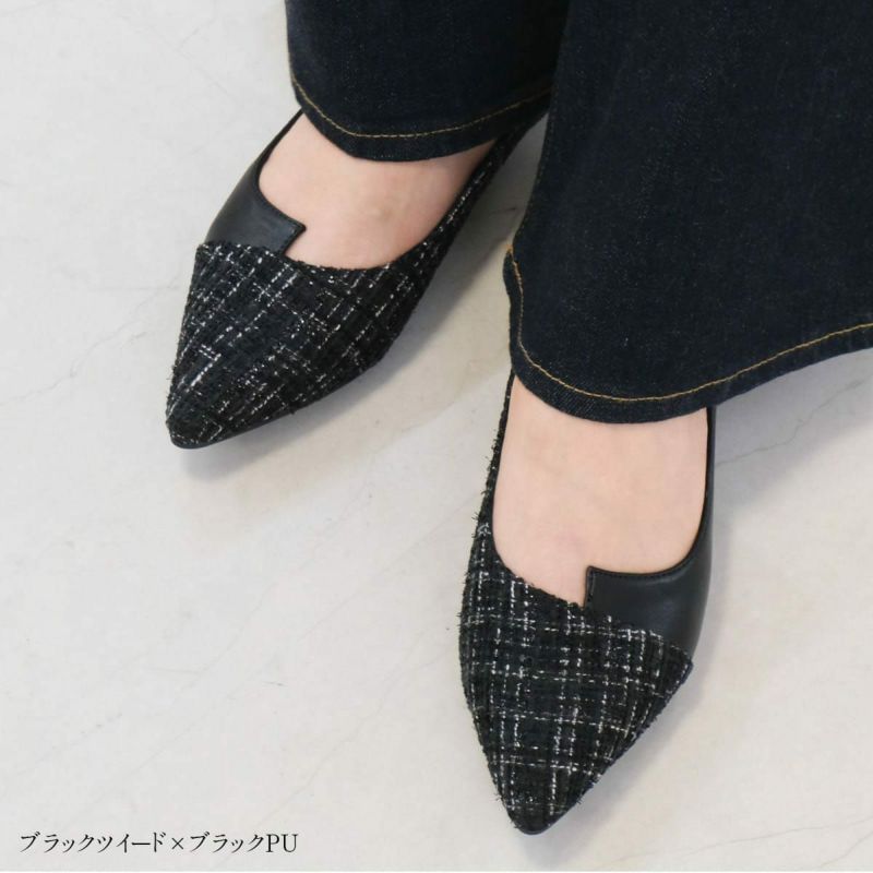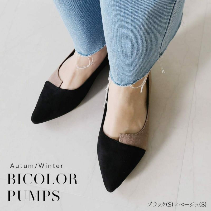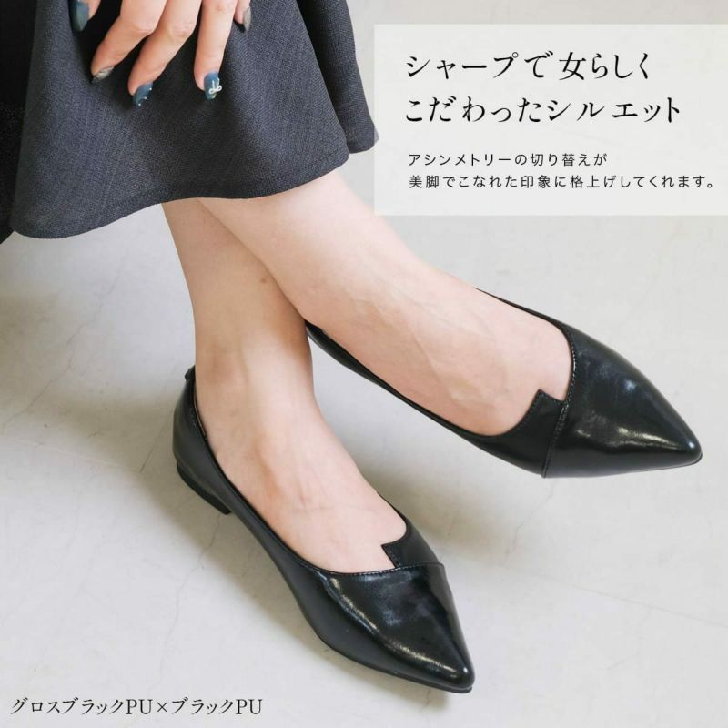 すらりとしたつま先と切り替えデザインが足元にアクセント