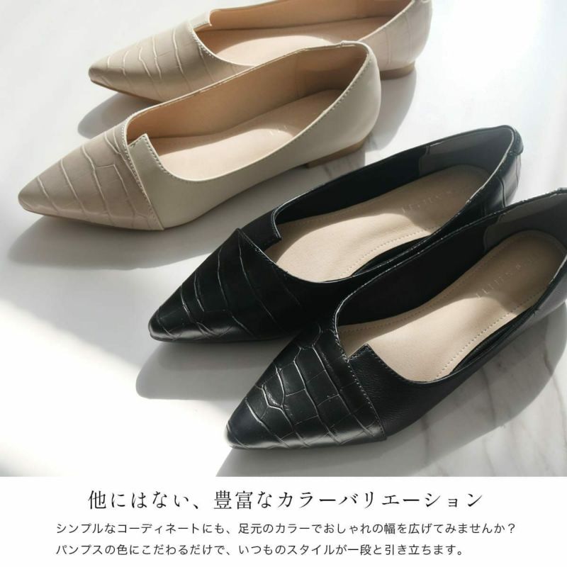 ヒールなしでも美脚に見えるポインテッドトゥパンプスふかふかのWクッションにフィット感を高めるかかとクッション付き