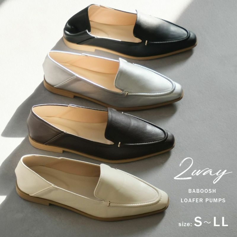 【在庫限り!特別価格!】2WAYバブーシュスクエアトゥローファーパンプス レディース