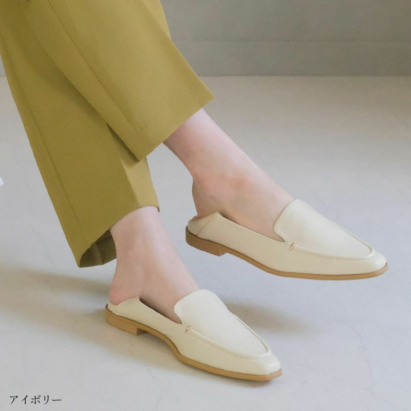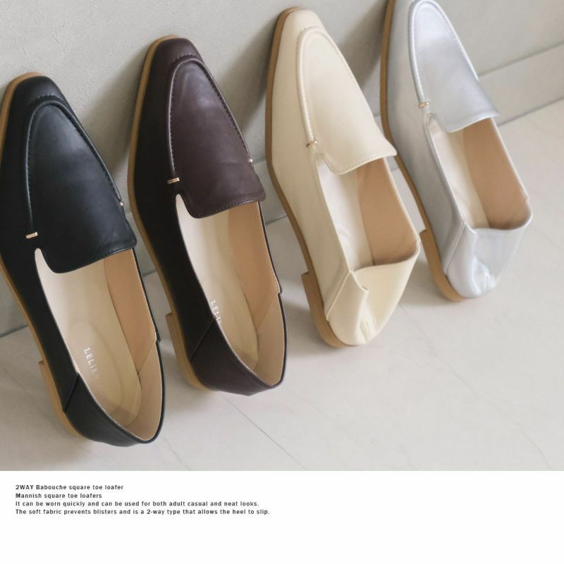踵がふめる2WAYバブーシュのシンプルスクエアトゥローファー