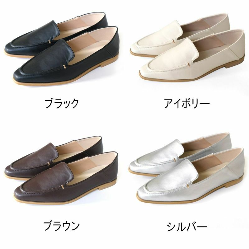 柔らかい生地で靴ずれしにくく快適マニッシュなスクエアトゥローファーで