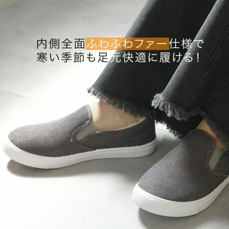 かかと部分の2重クッションで疲れにくい!スポット履ける履きやすさに、つま先までふわふわファーがついて足元あったか!