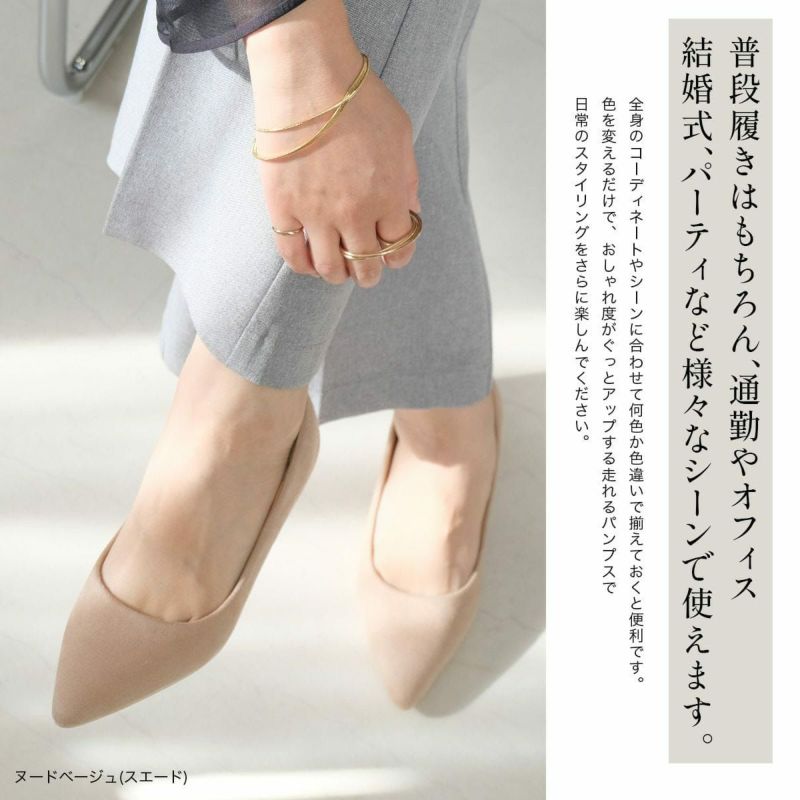 ローヒールでありながらポインテッドで大人っぽくきれいめなフォルムで美脚に見せてくれます。