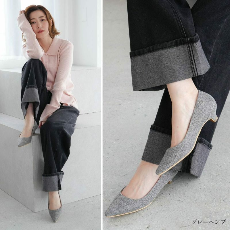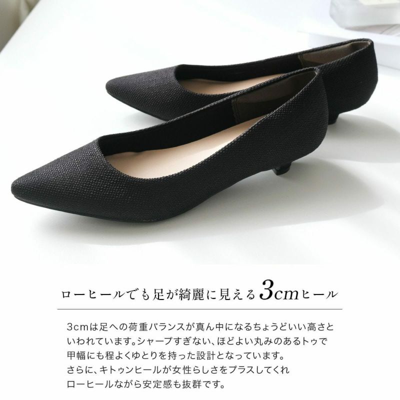 シャープで女らしく美脚に見せる、3cmヒールポインテッドトゥパンプス