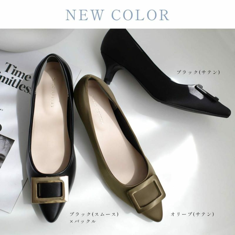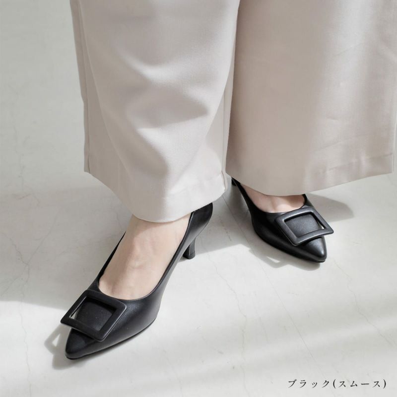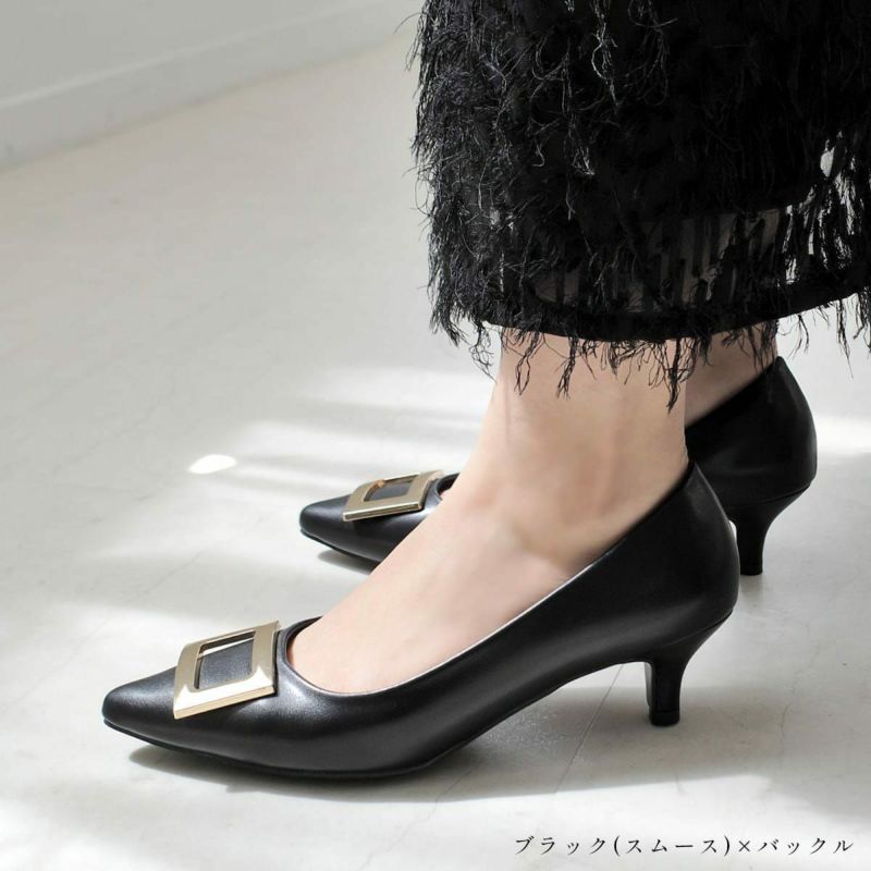 【2足以上で10%OFF対象】バックルモチーフポインテッドトゥパンプス レディース