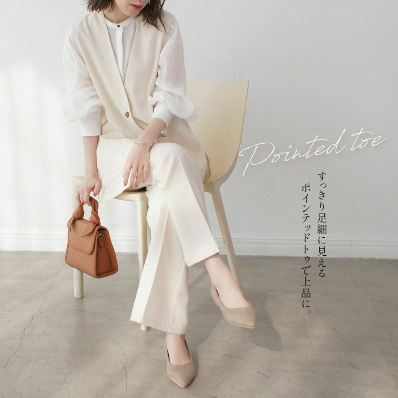 【在庫限り!特別価格!】ポインテッドトゥアシンメトリーカットローヒールパンプス レディース