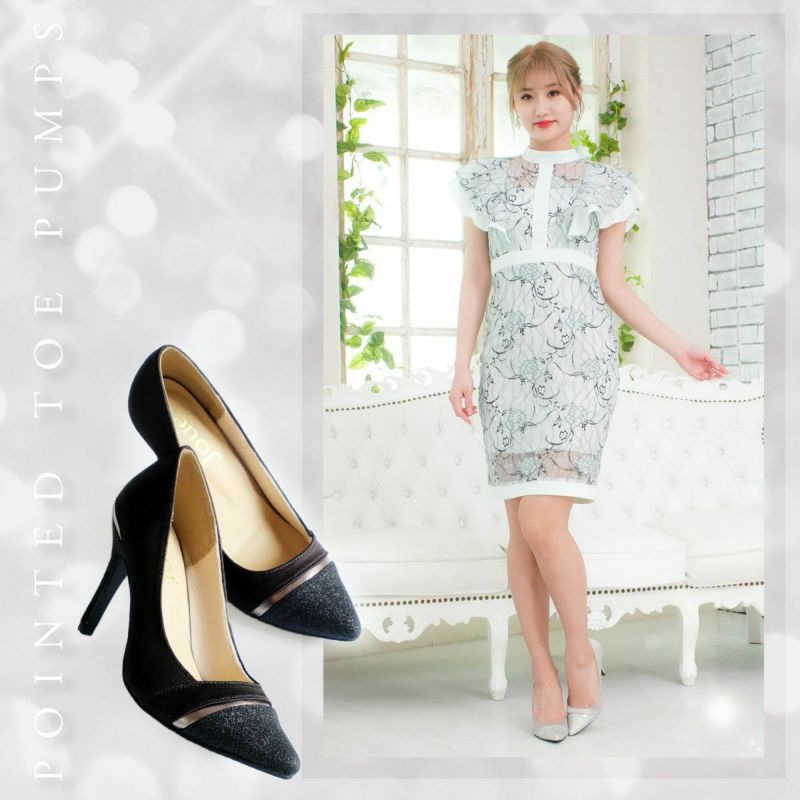 ラメ切り替えポインテッドトゥパンプス レディース