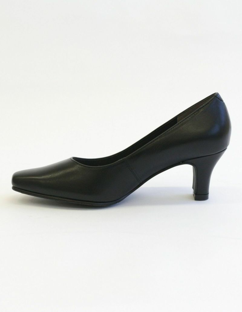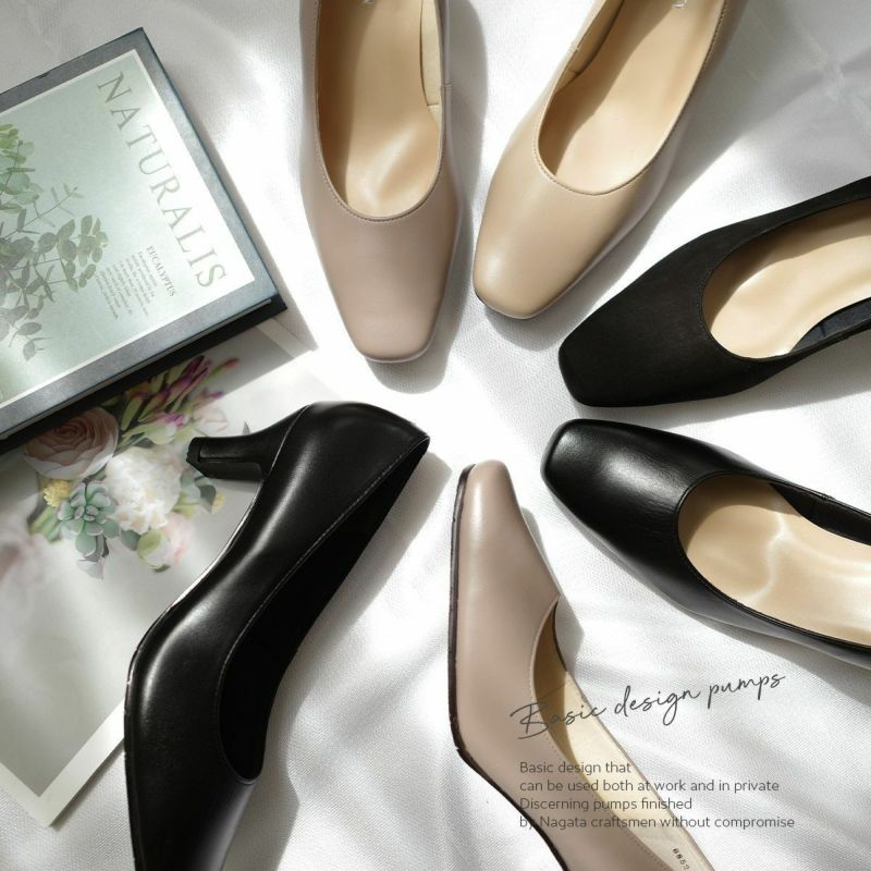 シーンを選ばず使えるスクエアトゥ。ヒールも6cmと高すぎず、通勤、リクルート、冠婚葬祭と幅広くお使いいただけます。