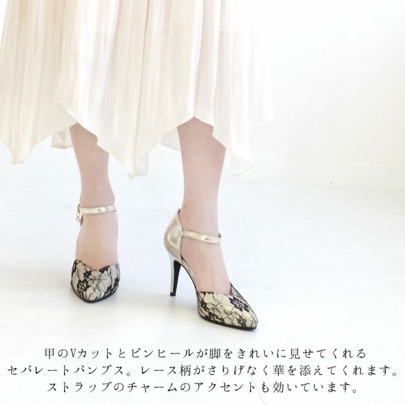アンクルストラップで脱げにくく、セパレートデザインが程よい抜け感をプラスしてくれます。インソールは疲れを和らげてくれるクッション入りで、9.5cmのハイヒールながらも安心感のある履き心地。
