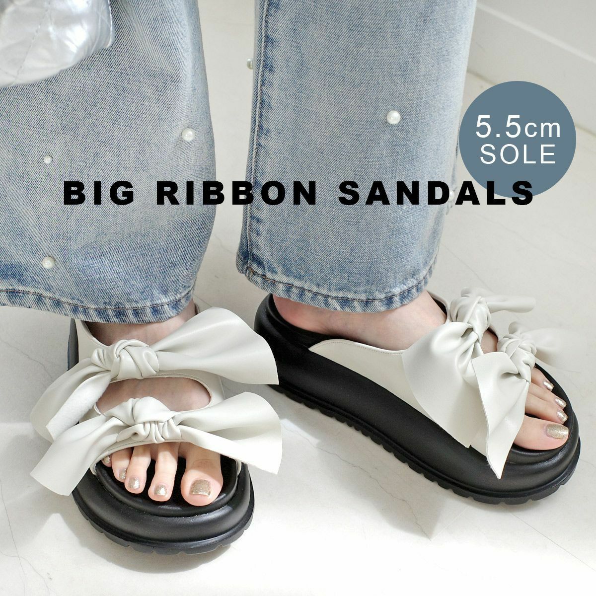 【在庫限り!特別価格!】ビッグリボンサンダル厚底 レディース