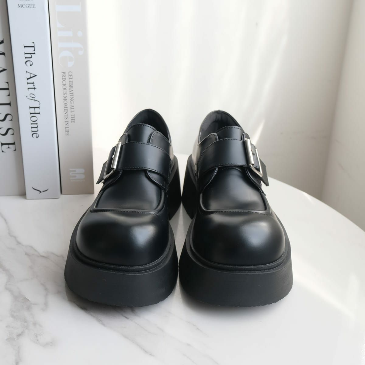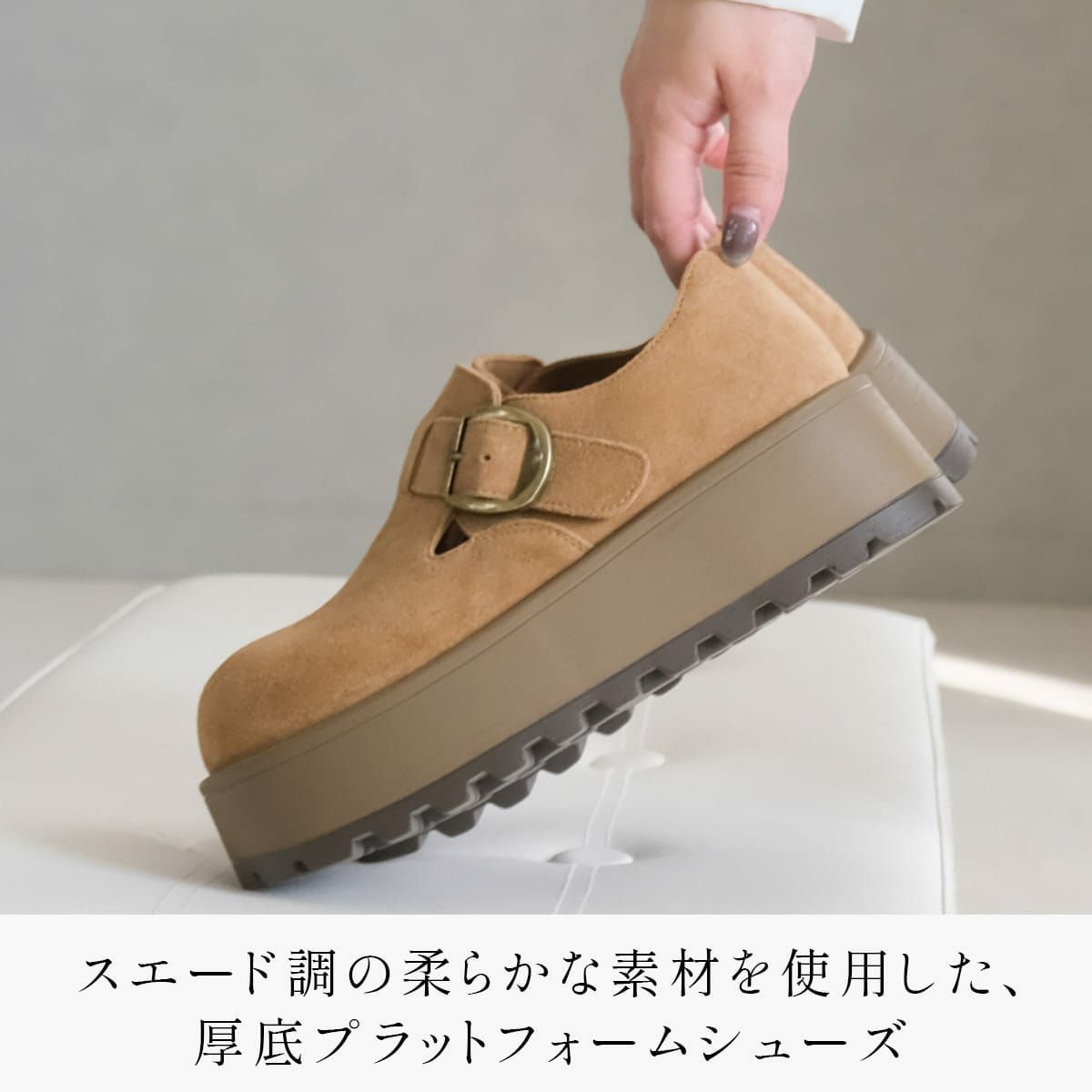 プラットフォーム厚底インヒールバックルシューズ レディース