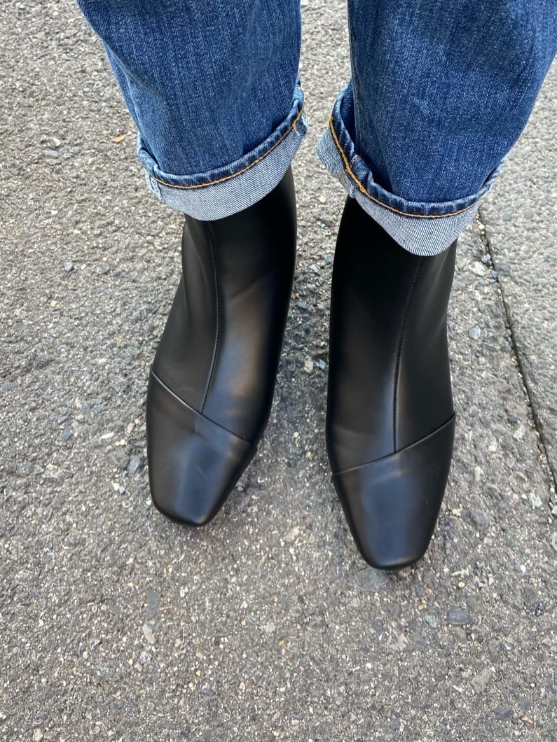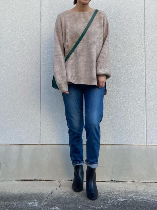 シンプルでスッキリとしたラインなので、パンツにもスカートにも合わせやすいです。